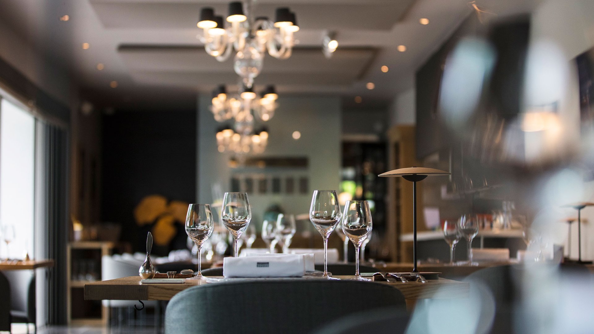 Admirez une décoration douce et raffinée toute en transparence laissant la priorité à la vue et à l'assiette.